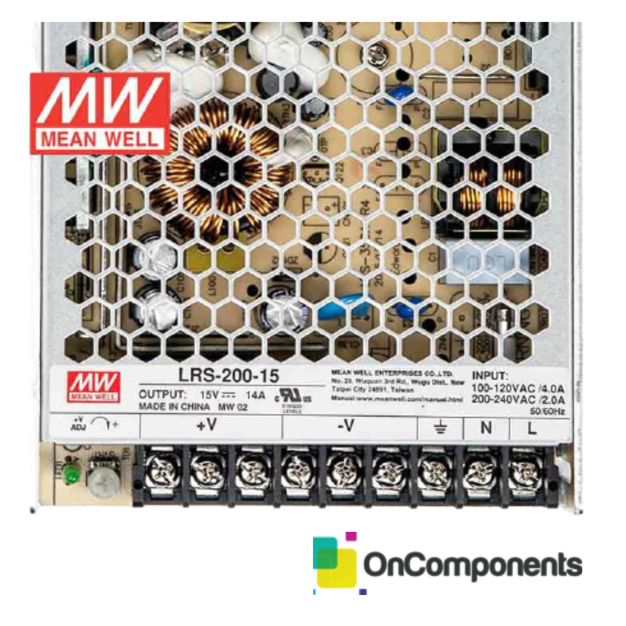 AC/DC Single output Enclosed Switching Power Supply, Output 15V 90 ~ 132 VAC, 180 ~ 264 VAC, 240 ~ 370 VDC Input.